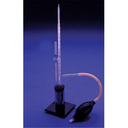 Let your students determine the dew point of the surrounding air and calculate the relative humidity without having to experiment at the crack of dawn- The unit utilizes an aspirator bulb to pump air through a liquid such as alcohol which lowers the temperature until the dew point is reached- The dew point can be seen as a film of moisture that builds up on the outside of the nickel-plated cup that is used to hold the alcohol- The cooling caused by the evaporation of the alcohol is what produces the moisture- The thermometer is used to measure the temperature when the dew point occurs- Consists of a chrome tube on a plastic base thermometer air bulb and inlet tube and instructions- Dimensions 3-5in x 3-5in base x 13in- American Educational Products have a lead ship time of 21 days- SKU: amed3102